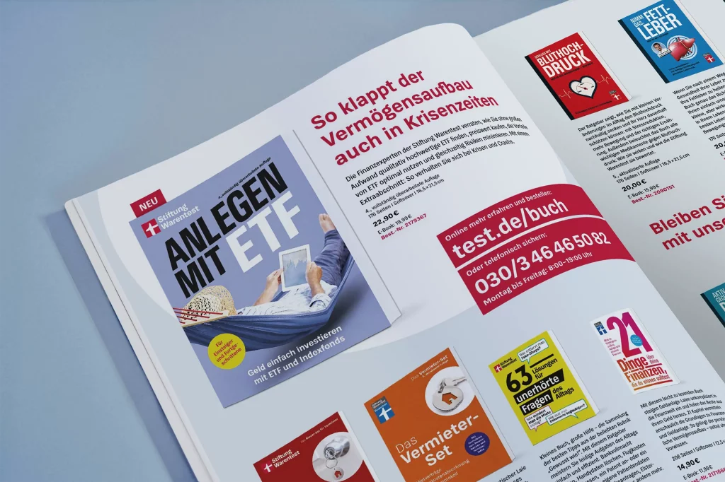 In den Zeitschriften »Stiftung Warentest« und »Stiftung Warentest Finanzen« gibt es Seiten, auf denen die Bücher und Abonnements der Stiftung beworben werden. Diese lese ich im Auftrag der DreiDreizehn Werbeagentur Korrektur.
